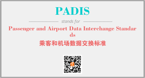 上述内容是“Passenger and Airport Data Interchange Standards”作为“PADIS”的缩写,解释为“乘客和机场数据交换标准”时的信息,以及英文缩略词PADIS所代表的英文单词,其对应的中文拼音、详细解释以及在英文中的流行度和相关分类、应用领域及应用示例等。