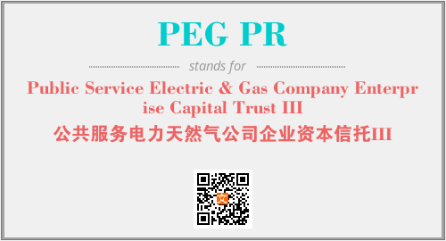 上述内容是“Public Service Electric & Gas Company Enterprise Capital Trust III”作为“PEG PR”的缩写,解释为“公共服务电力天然气公司企业资本信托III”时的信息,以及英文缩略词PEG PR所代表的英文单词,其对应的中文拼音、详细解释以及在英文中的流行度和相关分类、应用领域及应用示例等。