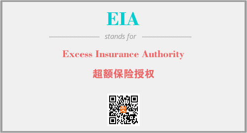 上述内容是“Excess Insurance Authority”作为“EIA”的缩写,解释为“超额保险授权”时的信息,以及英文缩略词EIA所代表的英文单词,其对应的中文拼音、详细解释以及在英文中的流行度和相关分类、应用领域及应用示例等。