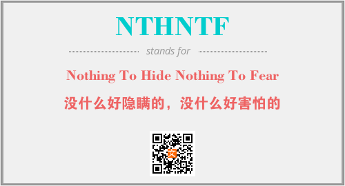 以上为Nothing To Hide Nothing To Fear英文缩略词NTHNTF的中文解释,以及该英文缩写在英语的流行度、分类和应用领域方面的信息。