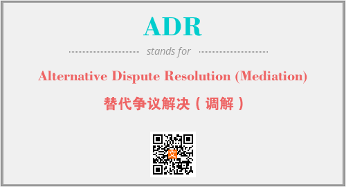 以上为Alternative Dispute Resolution (Mediation)英文缩略词ADR的中文解释,以及该英文缩写在英语的流行度、分类和应用领域方面的信息。