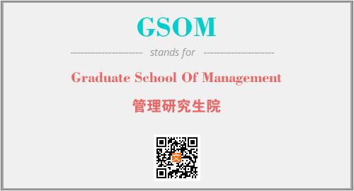 英文缩略词“GSOM”经常作为“Graduate School Of Management”的英文缩写来使用,中文表示:“管理研究生院”。本文将详细介绍英文缩写词GSOM所代表英文单词,其对应的中文拼音、详细解释以及在英语中的流行度。此外,还有关于缩略词GSOM的分类、应用领域及相关应用示例等。