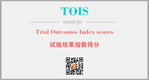 上述内容是“Trial Outcomes Index scores”作为“TOIS”的缩写,解释为“试验结果指数得分”时的信息,以及英文缩略词TOIS所代表的英文单词,其对应的中文拼音、详细解释以及在英文中的流行度和相关分类、应用领域及应用示例等。