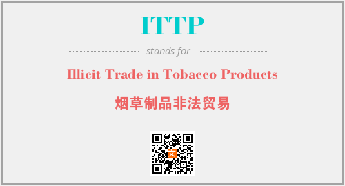 英文缩略词“ITTP”经常作为“Illicit Trade in Tobacco Products”的英文缩写来使用,中文表示:“烟草制品非法贸易”。本文将详细介绍英文缩写词ITTP所代表英文单词,其对应的中文拼音、详细解释以及在英语中的流行度。此外,还有关于缩略词ITTP的分类、应用领域及相关应用示例等。