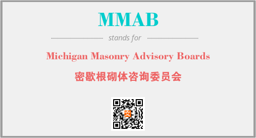 上述内容是“Michigan Masonry Advisory Boards”作为“MMAB”的缩写,解释为“密歇根砌体咨询委员会”时的信息,以及英文缩略词MMAB所代表的英文单词,其对应的中文拼音、详细解释以及在英文中的流行度和相关分类、应用领域及应用示例等。
