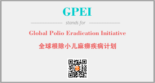 英文缩略词“GPEI”经常作为“Global Polio Eradication Initiative”的英文缩写来使用,中文表示:“全球根除小儿麻痹疾病计划”。本文将详细介绍英文缩写词GPEI所代表英文单词,其对应的中文拼音、详细解释以及在英语中的流行度。此外,还有关于缩略词GPEI的分类、应用领域及相关应用示例等。