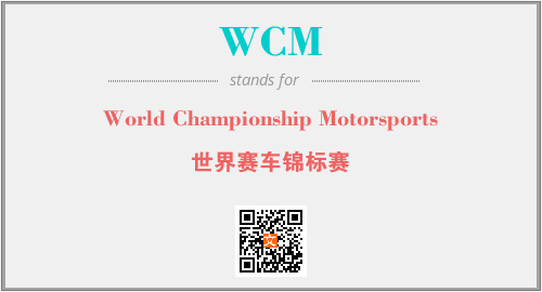 上述内容是“World Championship Motorsports”作为“WCM”的缩写,解释为“世界赛车锦标赛”时的信息,以及英文缩略词WCM所代表的英文单词,其对应的中文拼音、详细解释以及在英文中的流行度和相关分类、应用领域及应用示例等。