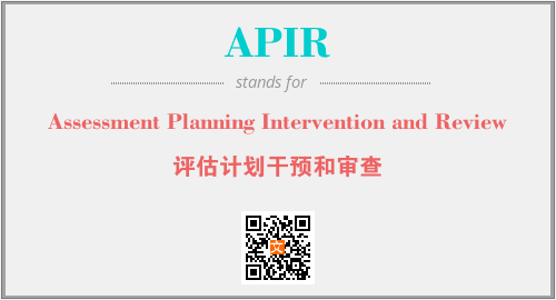 以上为Assessment Planning Intervention and Review英文缩略词APIR的中文解释,以及该英文缩写在英语的流行度、分类和应用领域方面的信息。