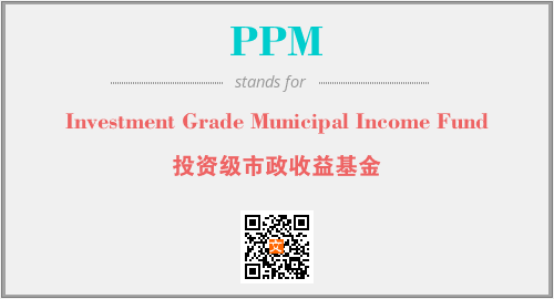 上述内容是“Investment Grade Municipal Income Fund”作为“PPM”的缩写,解释为“投资级市政收益基金”时的信息,以及英文缩略词PPM所代表的英文单词,其对应的中文拼音、详细解释以及在英文中的流行度和相关分类、应用领域及应用示例等。
