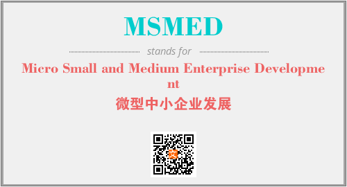 英文缩略词“MSMED”经常作为“Micro Small and Medium Enterprise Development”的英文缩写来使用,中文表示:“微型中小企业发展”。本文将详细介绍英文缩写词MSMED所代表英文单词,其对应的中文拼音、详细解释以及在英语中的流行度。此外,还有关于缩略词MSMED的分类、应用领域及相关应用示例等。