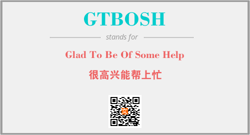 上述内容是“Glad To Be Of Some Help”作为“GTBOSH”的缩写,解释为“很高兴能帮上忙”时的信息,以及英文缩略词GTBOSH所代表的英文单词,其对应的中文拼音、详细解释以及在英文中的流行度和相关分类、应用领域及应用示例等。