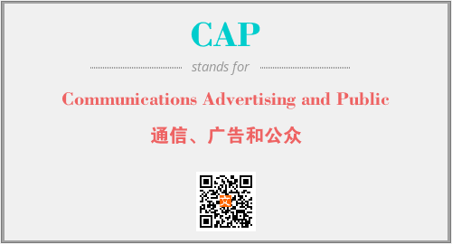 上述内容是“Communications Advertising and Public”作为“CAP”的缩写,解释为“通信、广告和公众”时的信息,以及英文缩略词CAP所代表的英文单词,其对应的中文拼音、详细解释以及在英文中的流行度和相关分类、应用领域及应用示例等。