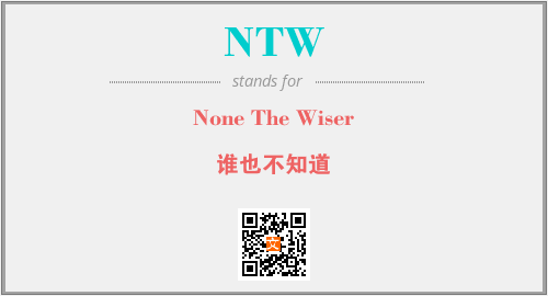 上述内容是“None The Wiser”作为“NTW”的缩写,解释为“谁也不知道”时的信息,以及英文缩略词NTW所代表的英文单词,其对应的中文拼音、详细解释以及在英文中的流行度和相关分类、应用领域及应用示例等。