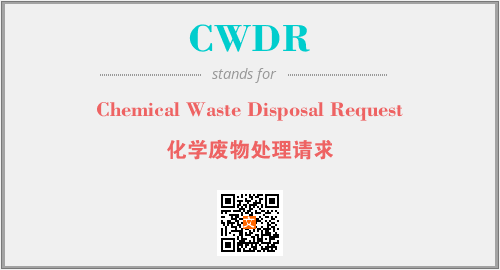 上述内容是“Chemical Waste Disposal Request”作为“CWDR”的缩写,解释为“化学废物处理请求”时的信息,以及英文缩略词CWDR所代表的英文单词,其对应的中文拼音、详细解释以及在英文中的流行度和相关分类、应用领域及应用示例等。