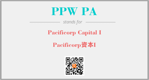 上述内容是“Pacificorp Capital I”作为“PPW PA”的缩写,解释为“Pacificorp资本I”时的信息,以及英文缩略词PPW PA所代表的英文单词,其对应的中文拼音、详细解释以及在英文中的流行度和相关分类、应用领域及应用示例等。