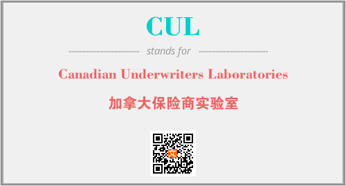 英文缩略词“CUL”经常作为“Canadian Underwriters Laboratories”的英文缩写来使用,中文表示:“加拿大保险商实验室”。本文将详细介绍英文缩写词CUL所代表英文单词,其对应的中文拼音、详细解释以及在英语中的流行度。此外,还有关于缩略词CUL的分类、应用领域及相关应用示例等。