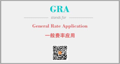 上述内容是“General Rate Application”作为“GRA”的缩写,解释为“一般费率应用”时的信息,以及英文缩略词GRA所代表的英文单词,其对应的中文拼音、详细解释以及在英文中的流行度和相关分类、应用领域及应用示例等。