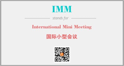 以上为International Mini Meeting英文缩略词IMM的中文解释,以及该英文缩写在英语的流行度、分类和应用领域方面的信息。