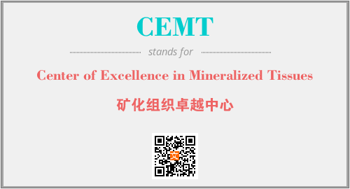 上述内容是“Center of Excellence in Mineralized Tissues”作为“CEMT”的缩写,解释为“矿化组织卓越中心”时的信息,以及英文缩略词CEMT所代表的英文单词,其对应的中文拼音、详细解释以及在英文中的流行度和相关分类、应用领域及应用示例等。