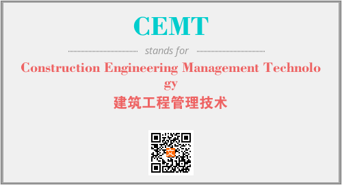 英文缩略词“CEMT”经常作为“Construction Engineering Management Technology”的英文缩写来使用,中文表示:“建筑工程管理技术”。本文将详细介绍英文缩写词CEMT所代表英文单词,其对应的中文拼音、详细解释以及在英语中的流行度。此外,还有关于缩略词CEMT的分类、应用领域及相关应用示例等。