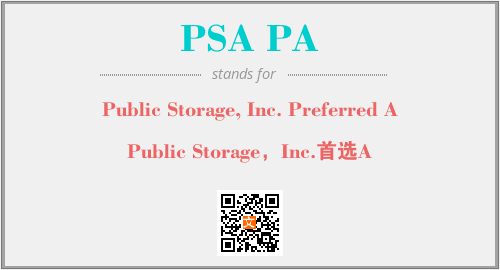 上述内容是“Public Storage, Inc. Preferred A”作为“PSA PA”的缩写,解释为“Public Storage,Inc.首选A”时的信息,以及英文缩略词PSA PA所代表的英文单词,其对应的中文拼音、详细解释以及在英文中的流行度和相关分类、应用领域及应用示例等。