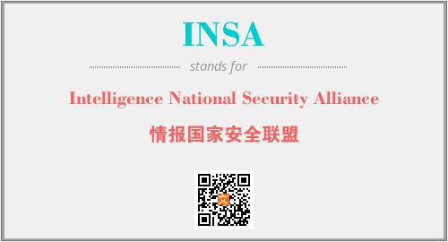 英文缩略词“INSA”经常作为“Intelligence National Security Alliance”的英文缩写来使用,中文表示:“情报国家安全联盟”。本文将详细介绍英文缩写词INSA所代表英文单词,其对应的中文拼音、详细解释以及在英语中的流行度。此外,还有关于缩略词INSA的分类、应用领域及相关应用示例等。