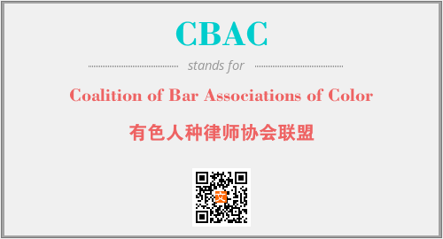 上述内容是“Coalition of Bar Associations of Color”作为“CBAC”的缩写,解释为“有色人种律师协会联盟”时的信息,以及英文缩略词CBAC所代表的英文单词,其对应的中文拼音、详细解释以及在英文中的流行度和相关分类、应用领域及应用示例等。