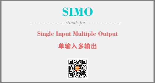 英文缩略词“SIMO”经常作为“Single Input Multiple Output”的英文缩写来使用,中文表示:“单输入多输出”。本文将详细介绍英文缩写词SIMO所代表英文单词,其对应的中文拼音、详细解释以及在英语中的流行度。此外,还有关于缩略词SIMO的分类、应用领域及相关应用示例等。