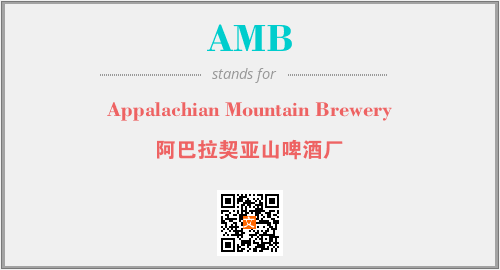 英文缩略词“AMB”经常作为“Appalachian Mountain Brewery”的英文缩写来使用,中文表示:“阿巴拉契亚山啤酒厂”。本文将详细介绍英文缩写词AMB所代表英文单词,其对应的中文拼音、详细解释以及在英语中的流行度。此外,还有关于缩略词AMB的分类、应用领域及相关应用示例等。