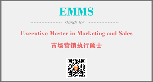 上述内容是“Executive Master in Marketing and Sales”作为“EMMS”的缩写,解释为“市场营销执行硕士”时的信息,以及英文缩略词EMMS所代表的英文单词,其对应的中文拼音、详细解释以及在英文中的流行度和相关分类、应用领域及应用示例等。