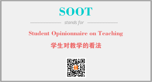 上述内容是“Student Opinionnaire on Teaching”作为“SOOT”的缩写,解释为“学生对教学的看法”时的信息,以及英文缩略词SOOT所代表的英文单词,其对应的中文拼音、详细解释以及在英文中的流行度和相关分类、应用领域及应用示例等。