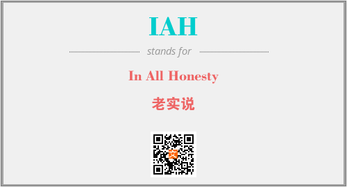以上为In All Honesty英文缩略词IAH的中文解释,以及该英文缩写在英语的流行度、分类和应用领域方面的信息。