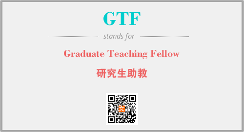 上述内容是“Graduate Teaching Fellow”作为“GTF”的缩写,解释为“研究生助教”时的信息,以及英文缩略词GTF所代表的英文单词,其对应的中文拼音、详细解释以及在英文中的流行度和相关分类、应用领域及应用示例等。