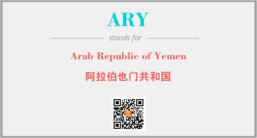 英文缩略词“ARY”经常作为“Arab Republic of Yemen”的英文缩写来使用,中文表示:“阿拉伯也门共和国”。本文将详细介绍英文缩写词ARY所代表英文单词,其对应的中文拼音、详细解释以及在英语中的流行度。此外,还有关于缩略词ARY的分类、应用领域及相关应用示例等。