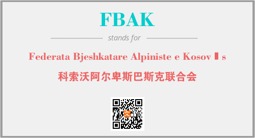 以上为Federata Bjeshkatare Alpiniste e Kosovës英文缩略词FBAK的中文解释,以及该英文缩写在英语的流行度、分类和应用领域方面的信息。