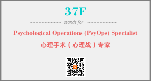 上述内容是“Psychological Operations (PsyOps) Specialist”作为“37F”的缩写,解释为“心理手术(心理战)专家”时的信息,以及英文缩略词37F所代表的英文单词,其对应的中文拼音、详细解释以及在英文中的流行度和相关分类、应用领域及应用示例等。