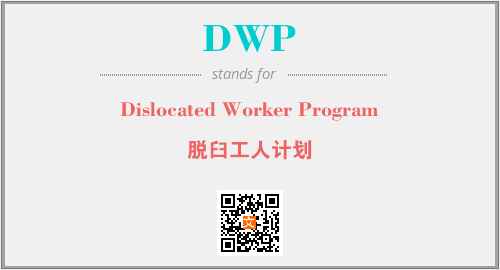 英文缩略词“DWP”经常作为“Dislocated Worker Program”的英文缩写来使用,中文表示:“脱臼工人计划”。本文将详细介绍英文缩写词DWP所代表英文单词,其对应的中文拼音、详细解释以及在英语中的流行度。此外,还有关于缩略词DWP的分类、应用领域及相关应用示例等。
