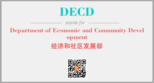 上述内容是“Department of Economic and Community Development”作为“DECD”的缩写,解释为“经济和社区发展部”时的信息,以及英文缩略词DECD所代表的英文单词,其对应的中文拼音、详细解释以及在英文中的流行度和相关分类、应用领域及应用示例等。