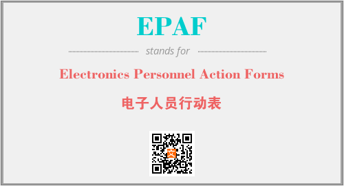 上述内容是“Electronics Personnel Action Forms”作为“EPAF”的缩写,解释为“电子人员行动表”时的信息,以及英文缩略词EPAF所代表的英文单词,其对应的中文拼音、详细解释以及在英文中的流行度和相关分类、应用领域及应用示例等。