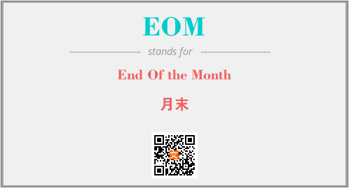 英文缩略词“EOM”经常作为“End Of the Month”的英文缩写来使用,中文表示:“月末”。本文将详细介绍英文缩写词EOM所代表英文单词,其对应的中文拼音、详细解释以及在英语中的流行度。此外,还有关于缩略词EOM的分类、应用领域及相关应用示例等。