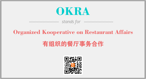 上述内容是“Organized Kooperative on Restaurant Affairs”作为“OKRA”的缩写,解释为“有组织的餐厅事务合作”时的信息,以及英文缩略词OKRA所代表的英文单词,其对应的中文拼音、详细解释以及在英文中的流行度和相关分类、应用领域及应用示例等。