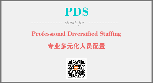 英文缩略词“PDS”经常作为“Professional Diversified Staffing”的英文缩写来使用,中文表示:“专业多元化人员配置”。本文将详细介绍英文缩写词PDS所代表英文单词,其对应的中文拼音、详细解释以及在英语中的流行度。此外,还有关于缩略词PDS的分类、应用领域及相关应用示例等。