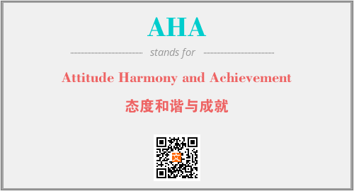 英文缩略词“AHA”经常作为“Attitude Harmony and Achievement”的英文缩写来使用,中文表示:“态度和谐与成就”。本文将详细介绍英文缩写词AHA所代表英文单词,其对应的中文拼音、详细解释以及在英语中的流行度。此外,还有关于缩略词AHA的分类、应用领域及相关应用示例等。