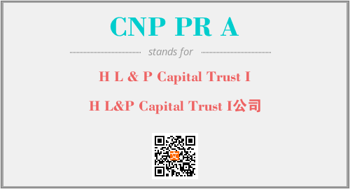 英文缩略词“CNP PR A”经常作为“H L & P Capital Trust I”的英文缩写来使用,中文表示:“H L&P Capital Trust I公司”。本文将详细介绍英文缩写词CNP PR A所代表英文单词,其对应的中文拼音、详细解释以及在英语中的流行度。此外,还有关于缩略词CNP PR A的分类、应用领域及相关应用示例等。