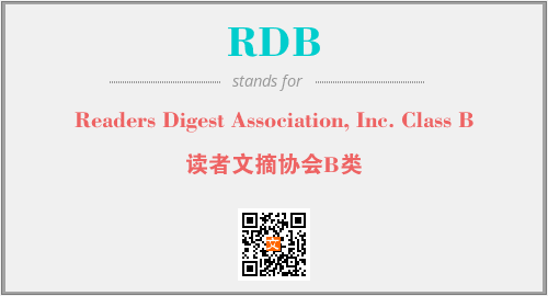 上述内容是“Readers Digest Association, Inc. Class B”作为“RDB”的缩写,解释为“读者文摘协会B类”时的信息,以及英文缩略词RDB所代表的英文单词,其对应的中文拼音、详细解释以及在英文中的流行度和相关分类、应用领域及应用示例等。