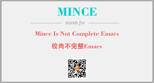 上述内容是“Mince Is Not Complete Emacs”作为“MINCE”的缩写,解释为“绞肉不完整Emacs”时的信息,以及英文缩略词MINCE所代表的英文单词,其对应的中文拼音、详细解释以及在英文中的流行度和相关分类、应用领域及应用示例等。