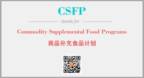 英文缩略词“CSFP”经常作为“Commodity Supplemental Food Programs”的英文缩写来使用,中文表示:“商品补充食品计划”。本文将详细介绍英文缩写词CSFP所代表英文单词,其对应的中文拼音、详细解释以及在英语中的流行度。此外,还有关于缩略词CSFP的分类、应用领域及相关应用示例等。