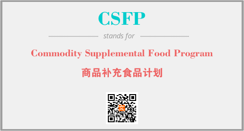 英文缩略词“CSFP”经常作为“Commodity Supplemental Food Program”的英文缩写来使用,中文表示:“商品补充食品计划”。本文将详细介绍英文缩写词CSFP所代表英文单词,其对应的中文拼音、详细解释以及在英语中的流行度。此外,还有关于缩略词CSFP的分类、应用领域及相关应用示例等。