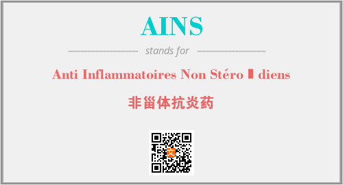 上述内容是“Anti Inflammatoires Non Stéroïdiens”作为“AINS”的缩写,解释为“非甾体抗炎药”时的信息,以及英文缩略词AINS所代表的英文单词,其对应的中文拼音、详细解释以及在英文中的流行度和相关分类、应用领域及应用示例等。