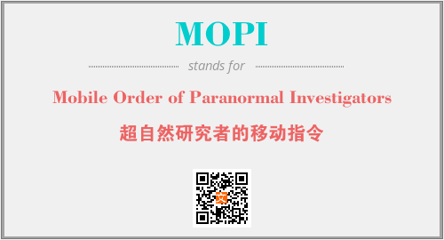 英文缩略词“MOPI”经常作为“Mobile Order of Paranormal Investigators”的英文缩写来使用,中文表示:“超自然研究者的移动指令”。本文将详细介绍英文缩写词MOPI所代表英文单词,其对应的中文拼音、详细解释以及在英语中的流行度。此外,还有关于缩略词MOPI的分类、应用领域及相关应用示例等。